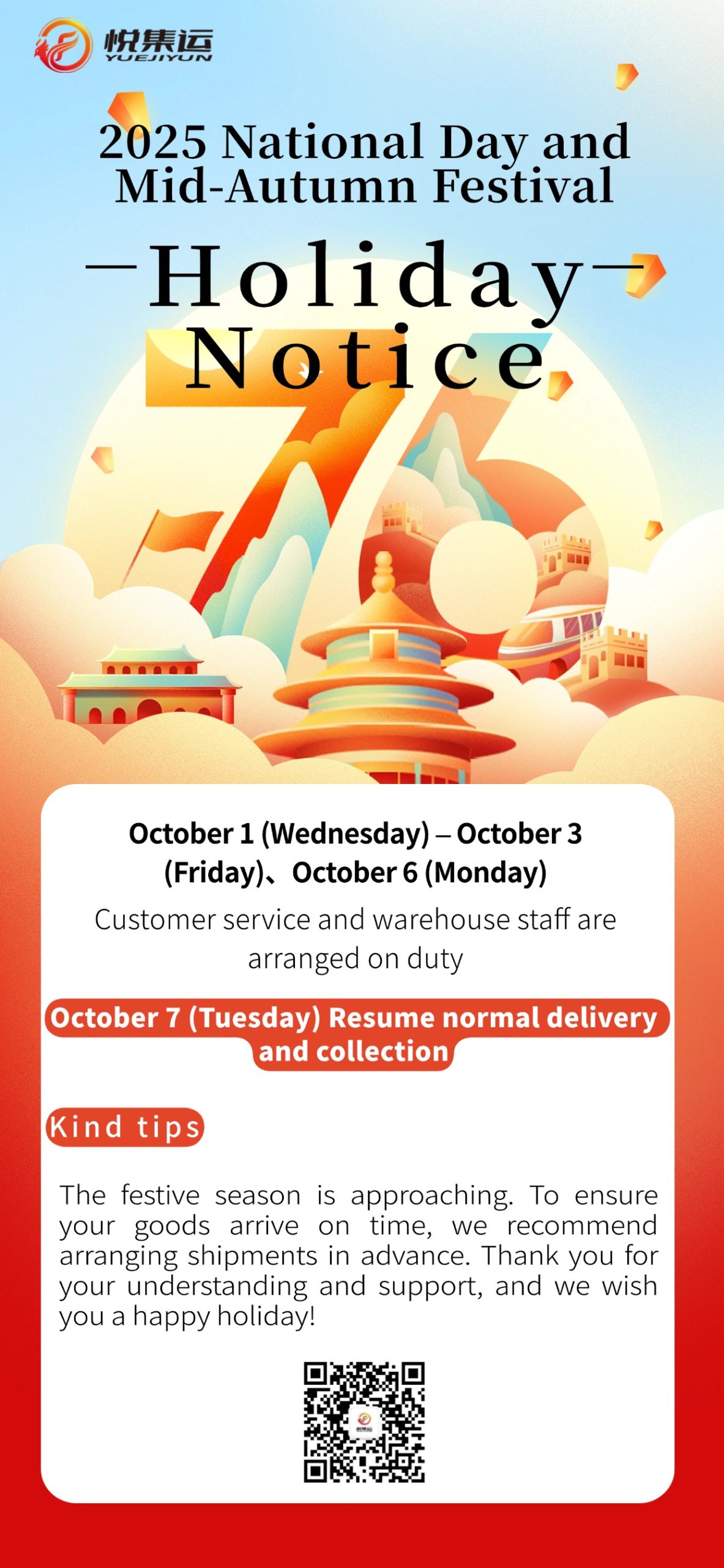 2025 National Day and Mid-Autumn Festival Shipping Arrangements